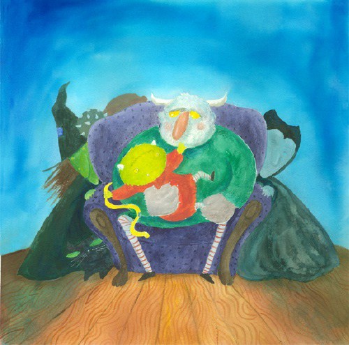 Melissa, any special challenges illustrating Hush, Little Monster? Please give us a brief step-by-step explanation of how you created your favorite illustration from the book.