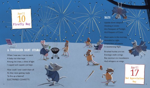 And since National Poetry Month is right around the corner, two April holidays: Firefly Day (April 10) and Bat Appreciation Day (April 17). Love how both of these capture that ingenuous sense of childlike wonder: