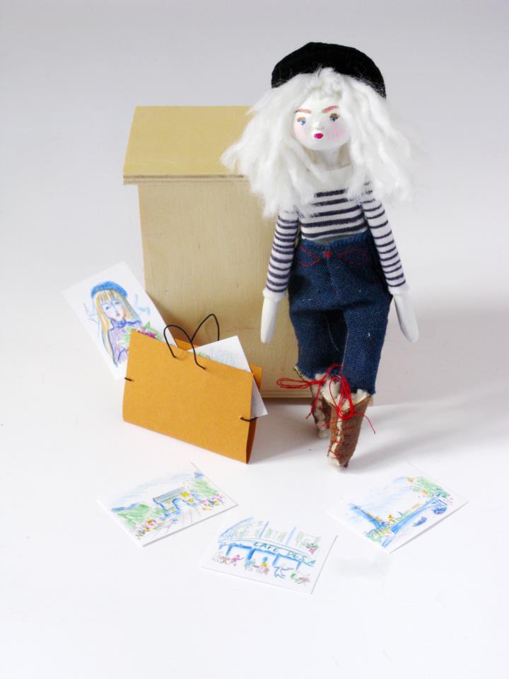 I really had a lot of fun creating Polly – the painter doll, and her miniature drawing portfolio. I also loved to create Julie and Cléo, and I put a lot of effort in creating their small vintage boots and golden eyeglasses. It’s all about small details, and every time I make a doll, I learn I can make things I hadn’t considered before, and my technique improves. This always happens by chance, because I don’t make detailed projects before starting a new piece.
