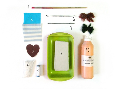 Tools of the Trade: Paperclay, Acrylic painting, Vintage fabric.