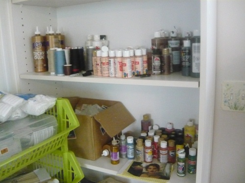 I work in a sunroom, with windows all around. I must have light to work at my optimal level, and I also have many drawers with clear fronts so I can organize my oodles of fabric and trim and see at a glance what is in the drawers. I also enjoy watching some of my favorite TV shows in DVD form along with music from Andrea Bocelli, Susan Boyle and others. Normally I always have some kind of noise going on, but sometimes I do enjoy total silence- depending on the mood I am in!