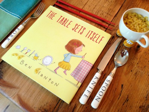 The Alphabet Soup table is all set to welcome story-scribbler, picture-squiggler, fun-socks-wearer Ben Clanton, whose second self-illustrated picture book, The Table Sets Itself (Walker BFYR, 2013), is officially hitting shelves today! WooHoo!