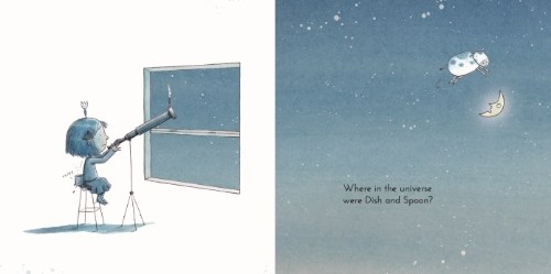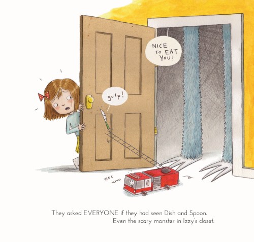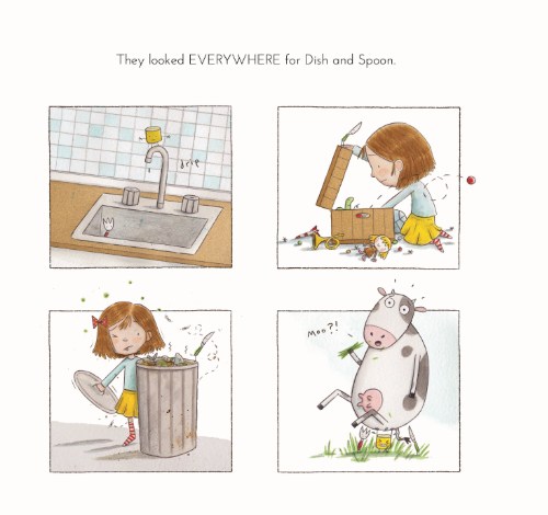 This leads to a few small disasters and a big ooh-la-la adventure for the runaway Dish and Spoon, whose absence turns Izzy into a complete mess because no other plate or spoon will do. How will she get them to return to the table? Generous sprinkles of punny jokes and visual humor (I bet you never knew a cup could lift a cow) make for a rollicking read aloud, and did I mention macaroni and cheese is instrumental in setting things right again?