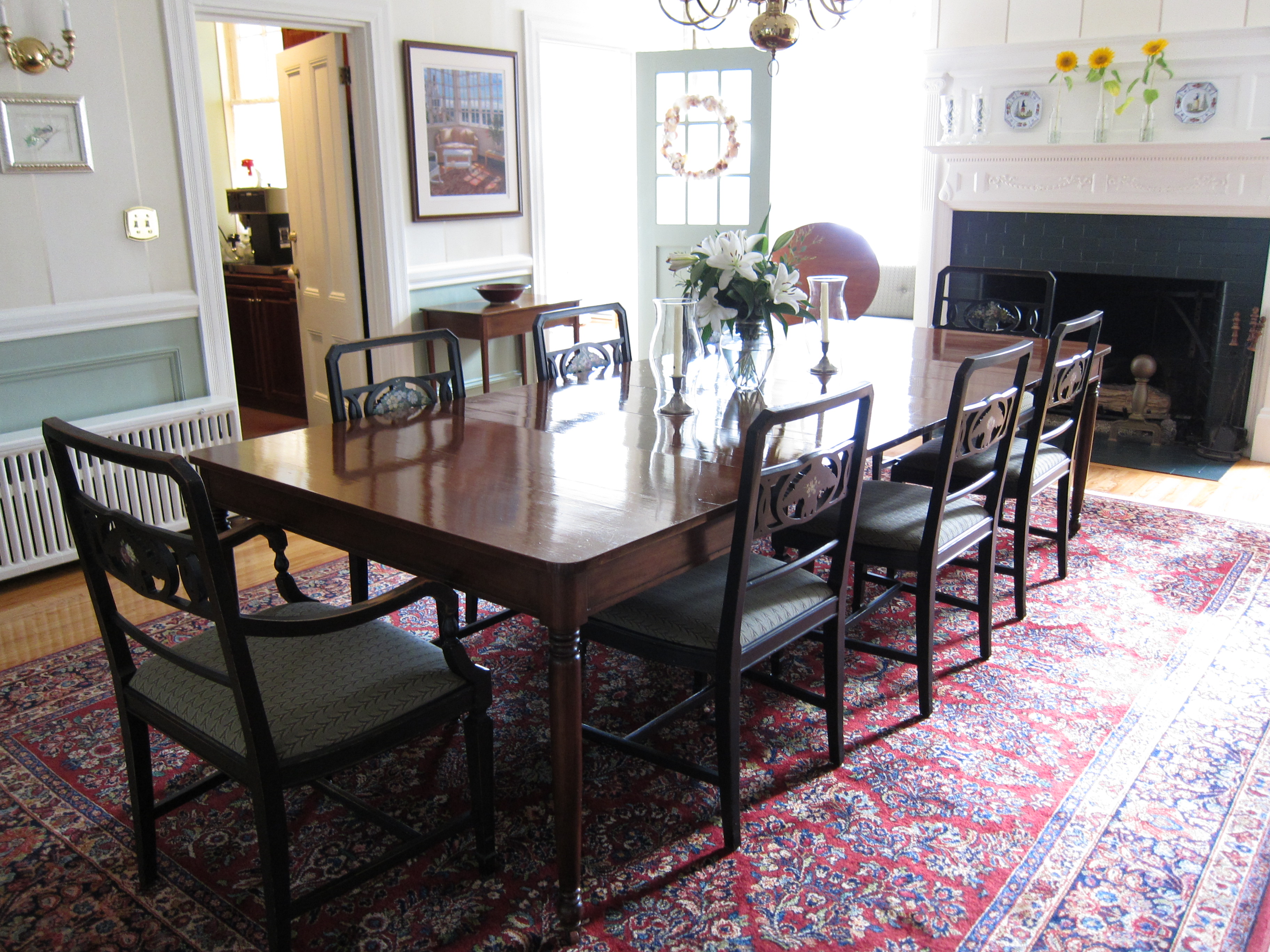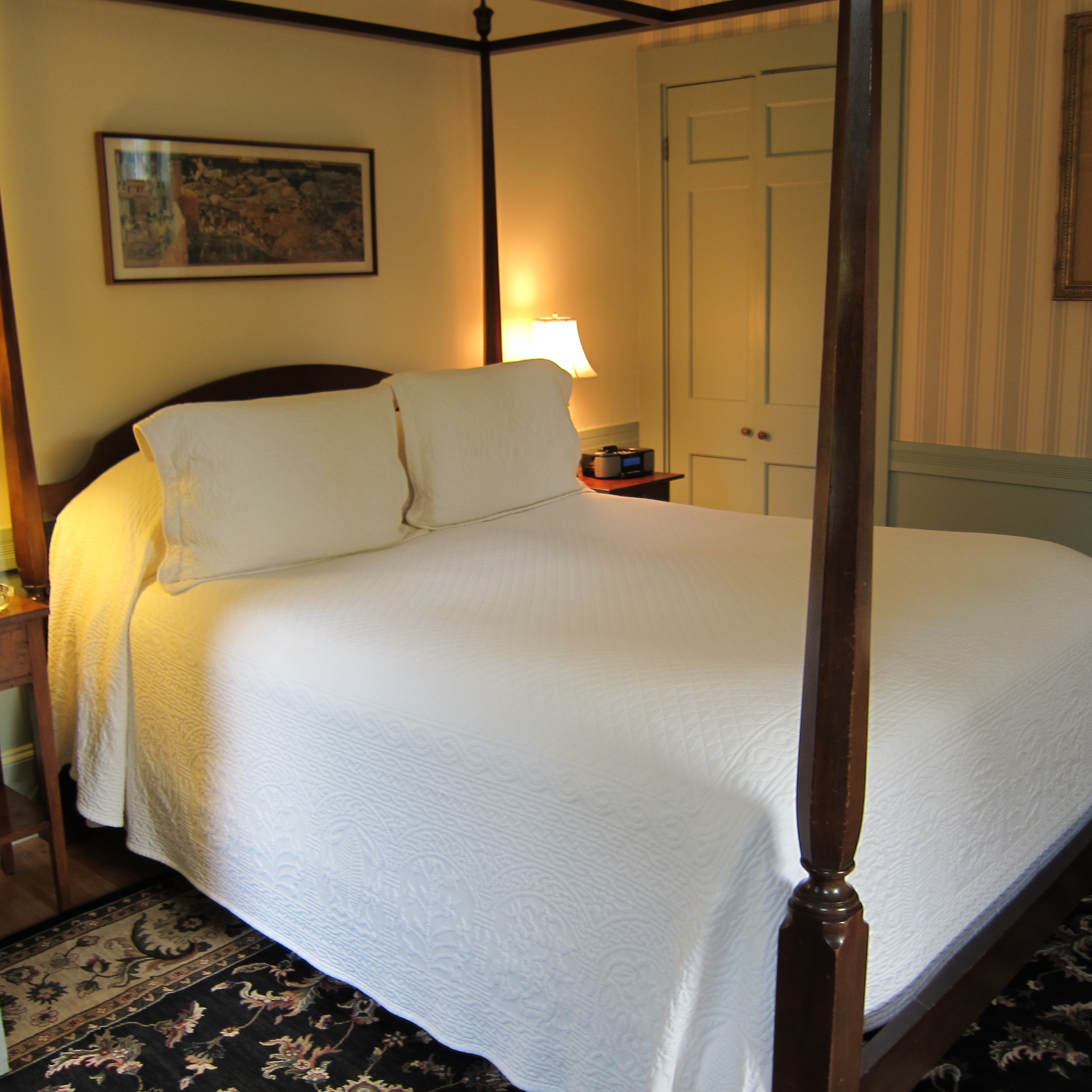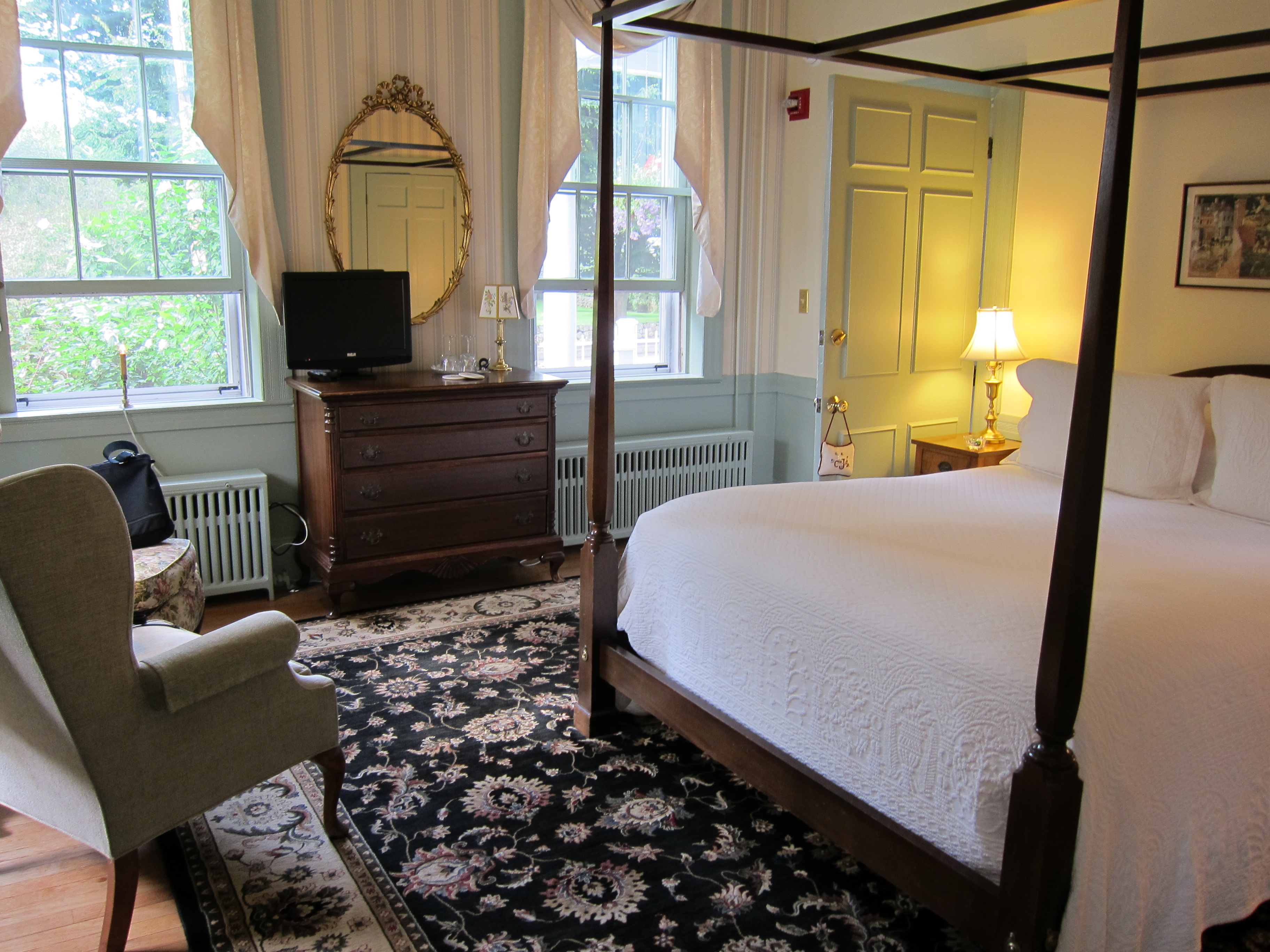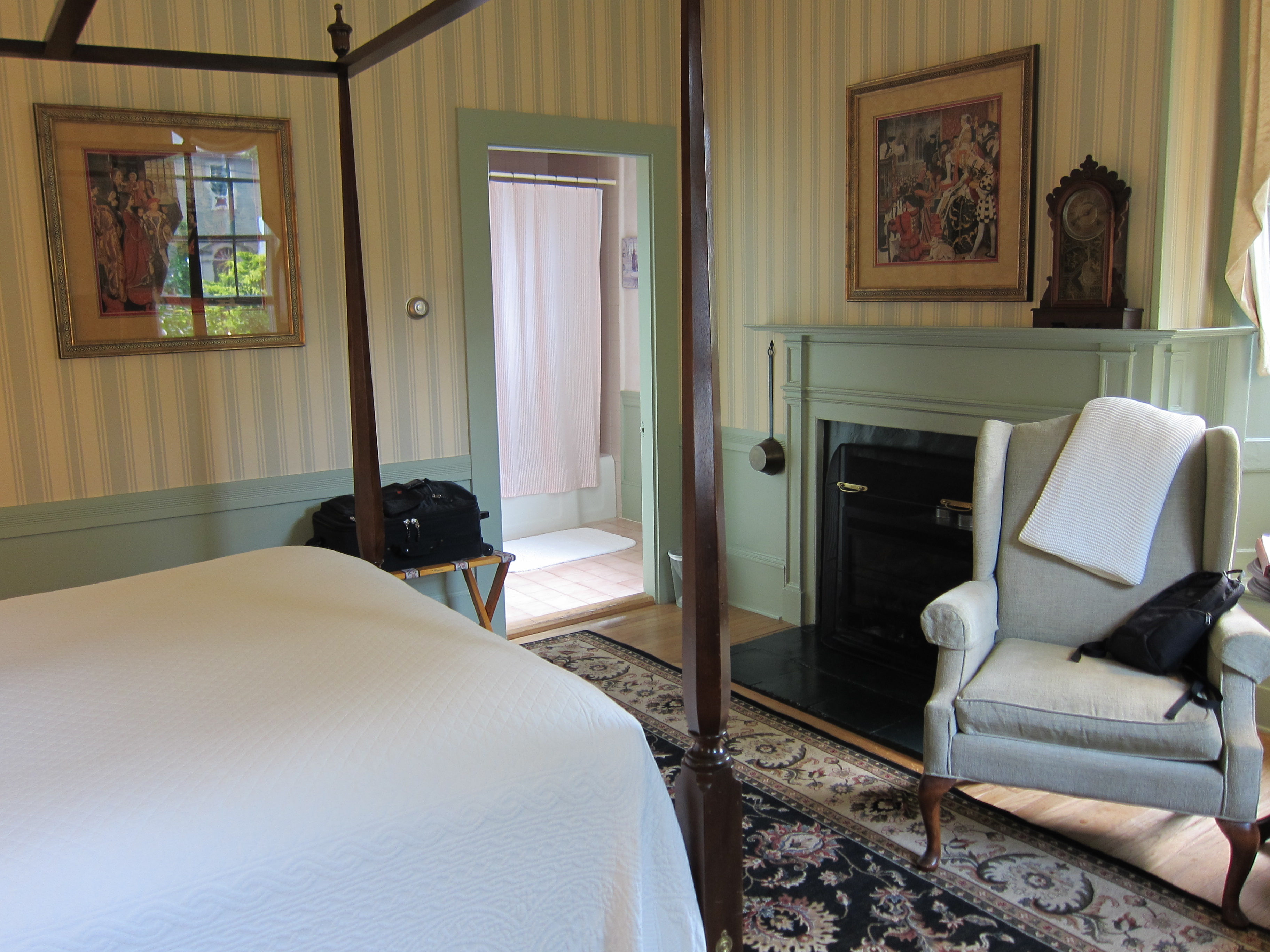 Brandon checked us into the Chatham Room on the first floor in the oldest part of the main house. Though not the largest room we stayed in on our trip, it was easily the coziest and most comfortable. Loved the soothing green and cream decor, ten-foot ceilings, four poster bed with featherbed and silky sateen sheets, preserved hardwood floors, cushy Oriental rug, fully tiled bath.
