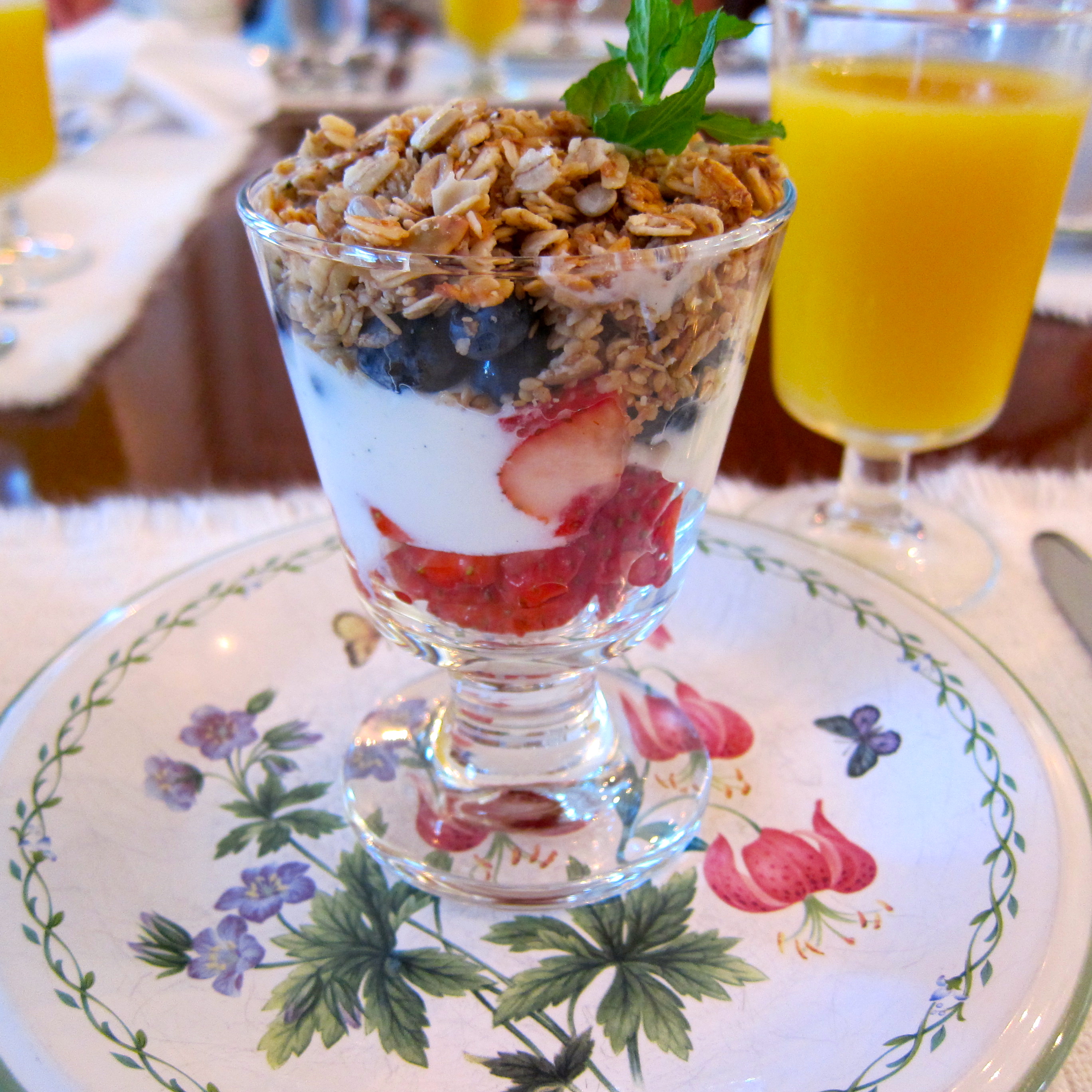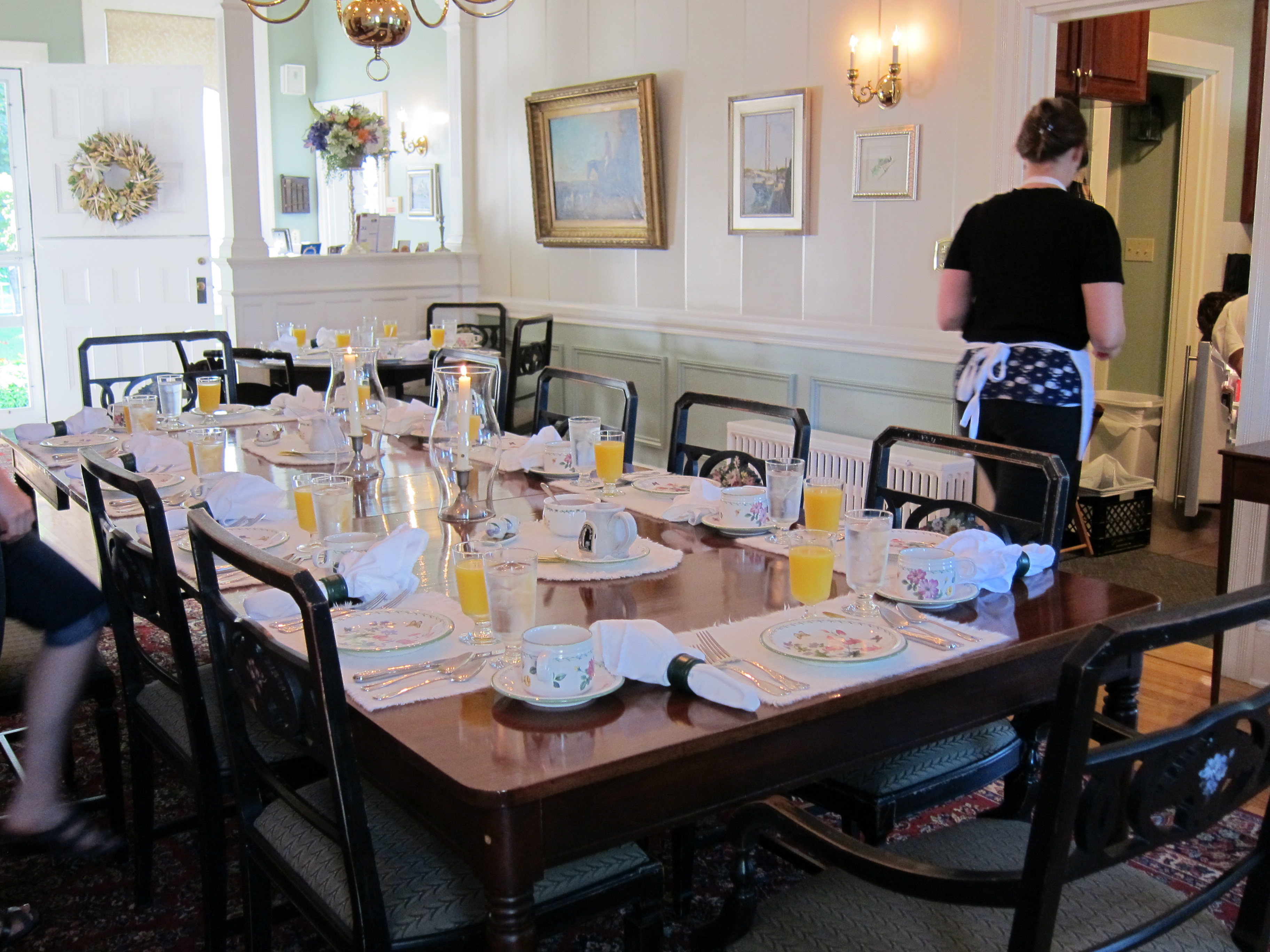 Breakfast the next morning in the cheery, light-filled dining room was a bit more formal. We opted for the first seating and enjoyed a yummy 3-course meal served by a pretty, hardworking young woman who really should smile more. 🙂