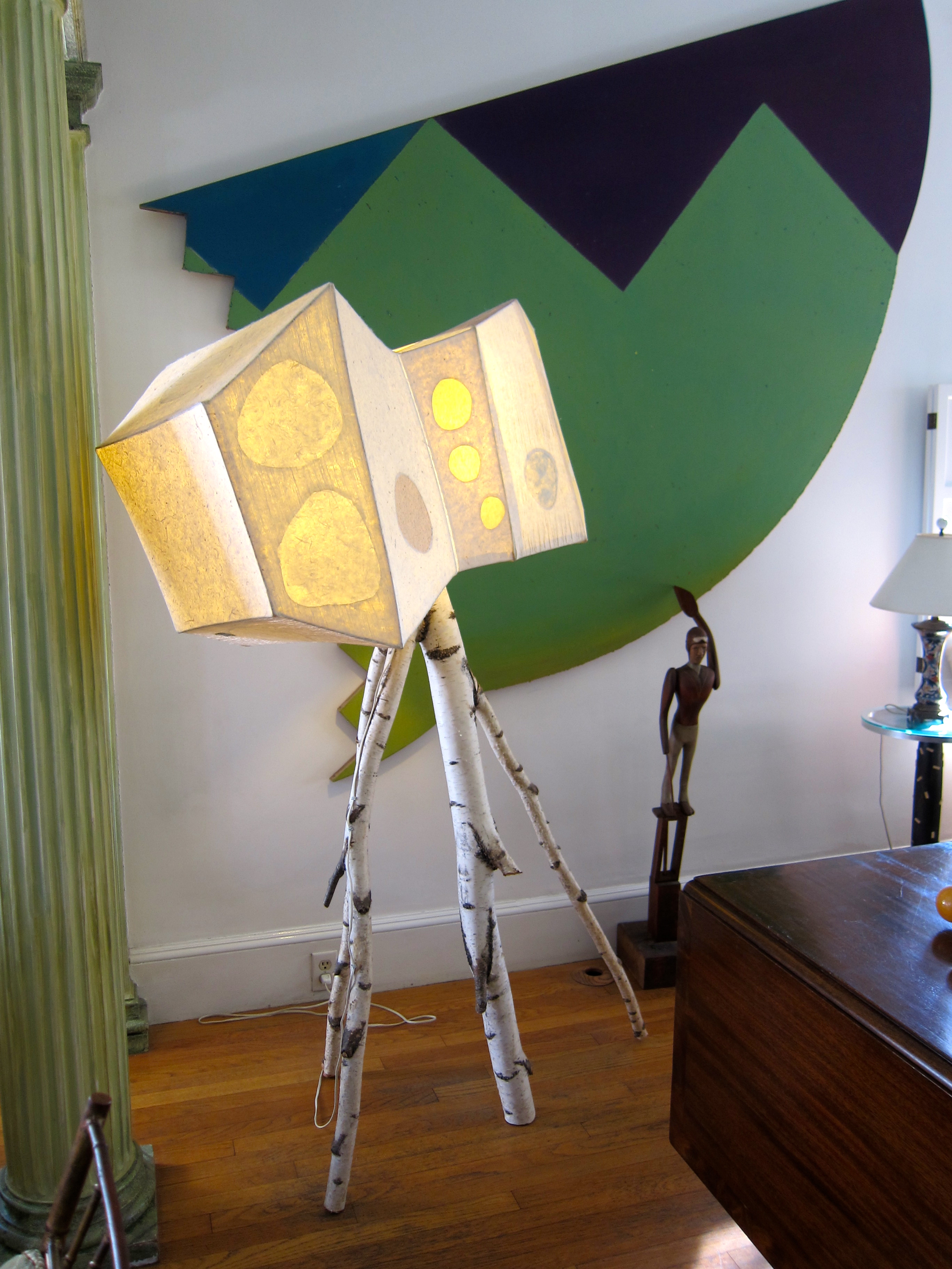 You cannot stop looking, looking at the tangerine throw pillows, the green faux-marble mantel and columns, the floor lamp with dogwood branch legs. And haven’t you always wanted a black-and-white striped barber pole in your dining room?