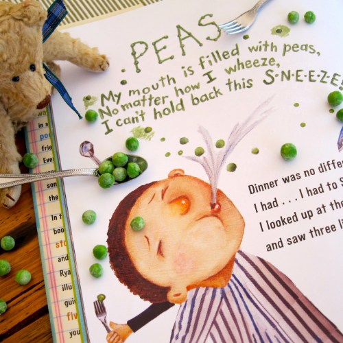 Three paws up for the unending fun contained in The Poem That Will Not End! We predict a run on toothpaste and pick-up-sticks, with an unprecedented consumption of peas. The book is great for reading aloud and acting out. Did I mention the Alpha Bites cereal and bananas? 🙂