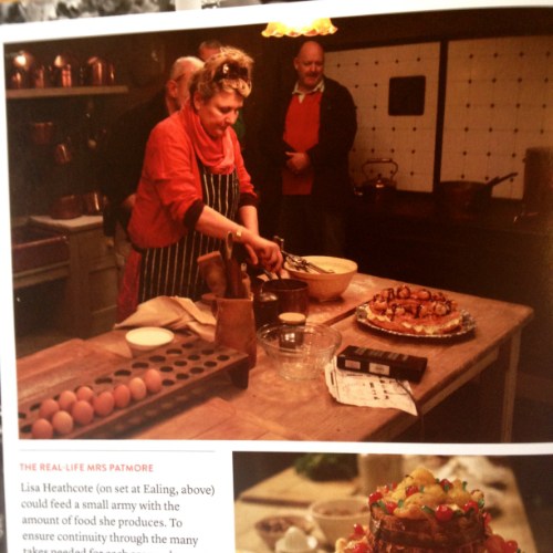 Lisa has to make sure everything will stand up to hours of filming under hot lights, and she has to prepare massive quantities of food for repeated takes. It’s also crucial to maintain a sense of continuity with what’s being cooked downstairs and what appears on the table upstairs, and when scenes are filmed weeks apart, she must recreate the dishes to look exactly the same.