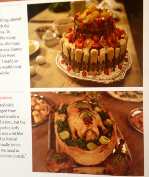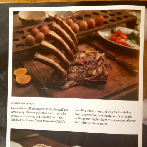 Love reading in the Season 4 companion book about how food economist Lisa Heathcote prepares her works of edible art for the series. All the beautiful still photos allow me to pore over the fascinating set details and props (wonderful mixing bowls, egg rack, copper pots, salt cellars, gorgeous silver trays, crystal, Spode bone china).