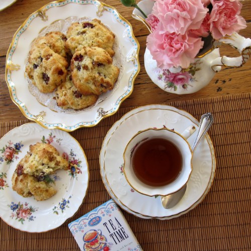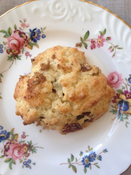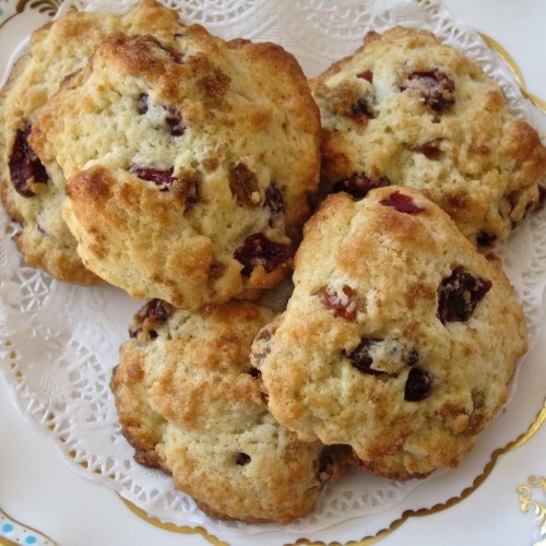 I made them from scratch for the first time the other day, using Pamela Foster’s recipe at Downton Abbey Cooks. What’s lovely about these traditional scone-like cakes is you can control the overall sweetness by the type(s) of dried fruit you add, and whether you choose to sprinkle or not sprinkle Demerara (dark brown) sugar on top before baking.