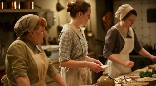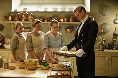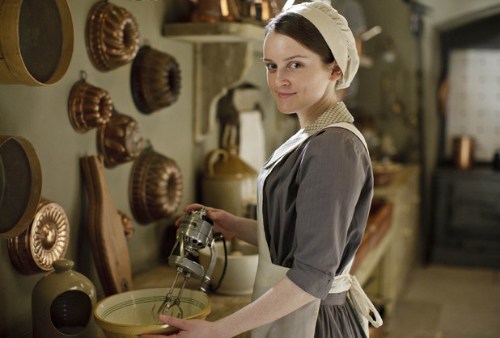 Though it might be fun to be served a fancy meal upstairs, I can better picture myself in the servant’s hall, helping myself to a piece of cheese and a thick slice of bread, sipping tea from a white cup and saucer. I’d reassure Mrs Patmore that an electric mixer and refrigerator are godsends that don’t replace cooks but make their jobs so much easier. 🙂