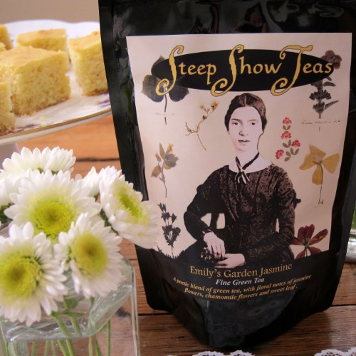 We’re serving a special tea today called “Emily’s Garden Jasmine,” a poetic blend of green tea with floral notes of jasmine, chamomile and sweet leaf.
