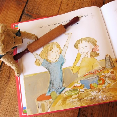 I love how the child’s point of view is honored and how the reality of the move isn’t glossed over with canned sentiment. I like the idea of baking together as a therapeutic, fun activity capable of inspiring brighter thoughts. And of course there’s the power of pie to bring all ages together — a food everyone can enjoy to sweeten the kind of partings we’ll all experience many times in our lives.