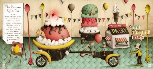 Which is to say, combine these witty, high octane verses with amazing, fully-realized art and you’re in for a thoroughly entertaining, fanciful ride. Kids and kids-at-heart will want to make up their own hybrid automobiles, whether they choose to go eeeelectric or with fossil fuel.