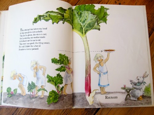What a sweet book! Especially love the pea pod pic and the rhubarb parasol poem.