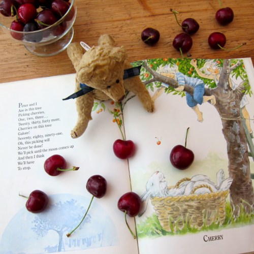 Those watercolors are delicious — what a perfect touch for a garden poetry book. I remember climbing a neighbor’s cherry tree and eating more than we gathered. Lovely poem.