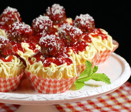 Did you think I’d forget dessert? Spaghetti and Meatballs Cupcakes for everyone!