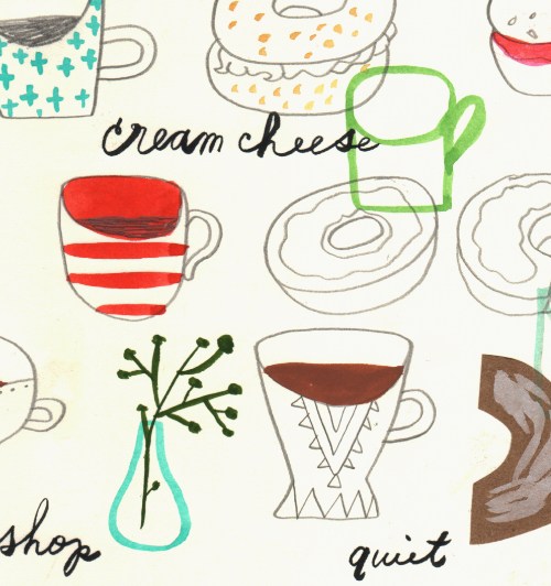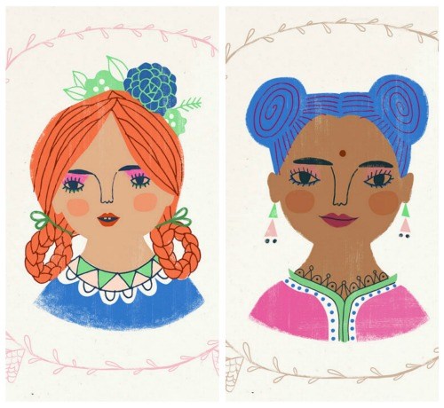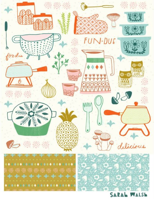I know you’ll enjoy learning more about Sarah and feasting your eyes on her charmingly quirky, fun and vibrant creations. She counts among her major influences 50’s and 60’s illustration, family, friends and love in general. It’s so easy to see the ♥ in her work. 🙂
