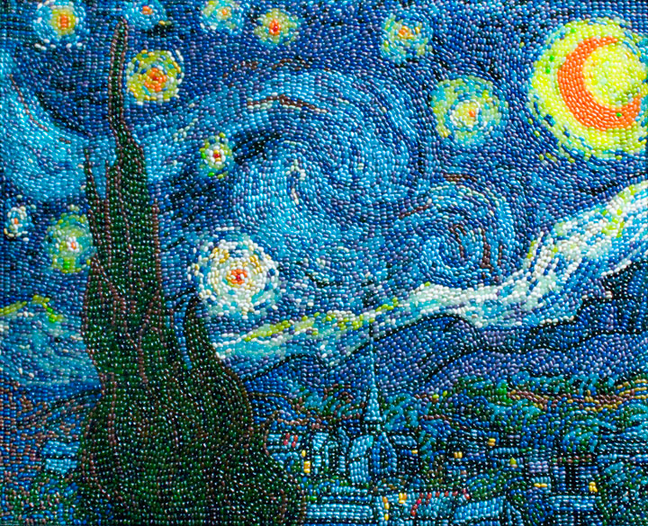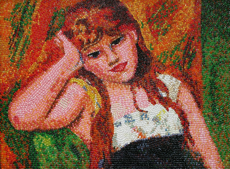 2. Reagan and his jelly beans deserve a little encore. Enjoy this gallery of jelly bean art. All these sweet masterpieces were created from thousands of jelly beans by California artist Kristen Cummings, with the exception of the Reagan portrait, which was done by the late Texas artist Peter Rocha (it now hangs in the Reagan Presidential Library in Simi Valley, California).