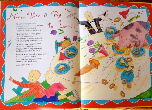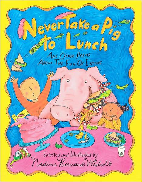 I’m in hog heaven over Nadine Bernard Westcott’s Never Take a Pig to Lunch: And Other Poems About the Fun of Eating (Orchard Books, 1994), my new all-time favorite anthology of food poetry for children.