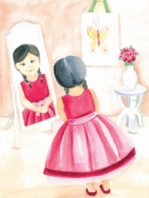 I was a little puzzled over why Mei-Mei would wear her new dress while cooking and not wait until afterwards to change, but I suppose there are kids who’ll wear their Halloween costumes to bed or refuse to take off a favorite outfit, so maybe it’s my adult practicality speaking.