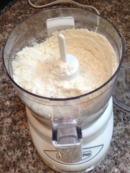 Place the almonds, sugar, flour, and baking powder in a small food processor and process until smooth. You will need a small to medium food processor since if the processor is too big, it will not be able to produce a smooth texture.