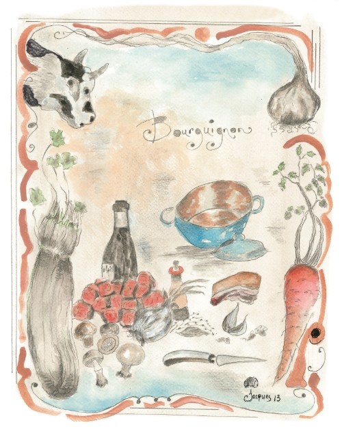 I enjoyed all the interesting recipe headnotes, most of which are family anecdotes, like when Claudine’s grandmother made soufflé for her grandfather without separating the eggs (worked anyway), how Jacques thinks she adds too many mushrooms to her Boeuf Bourguignon, and that Chicken with Cream Sauce was the first dish Jacques cooked on his own professionally when he was just 14.
