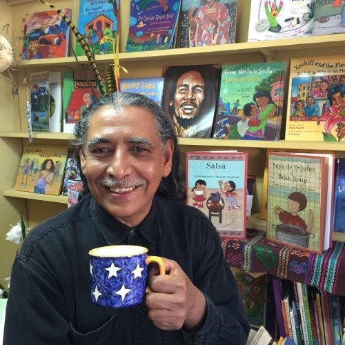 Look for his cooking poem series — each book features a recipe poem. So far he’s done Bean Soup, RIce Pudding, Guacamole, Tamalitos and Salsa. There’s a different illustrator for each book to add to the deliciousness. He also has several other stand alone PBs. A MOVIE IN MY PILLOW is especially lovely.
