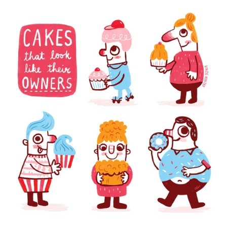 6. Cakes, cakes, cakes! Let them eat cakes — that look like their owners! You can get UK-based hand letterer/illustrator Linzie Hunter’s whimsical design as a print, or on a throw pillow, mug, t-shirt, tote bag or rug. Adorable (BTW, you look like a cupcake)! 🙂