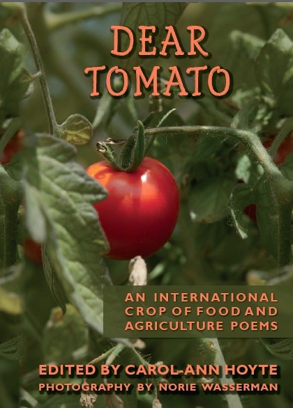 Edited by Canadian poet Carol-Ann Hoyte, Dear Tomato: An International Crop of Food and Agriculture Poems (CreateSpace, 2015), contains over fifty verses by thirty-four poets from seven countries, with fetching black-and-white photographs by Norie Wasserman. Along with praise for the hardworking farmer, the global menu offers much food for thought with topics such as composting, urban gardening, food activism, vegetarianism, honeybee collapse disorder, free-range vs. caged hens, food banks and fair trade.