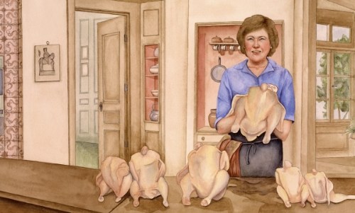 Erin traces Julia’s life from her childhood as a fun-loving prankster in Pasadena to her death in 2004 as a much beloved cookbook author, teacher, and television celebrity. We read about how Julia met and fell in love with Paul Child while working overseas for the OSS (Office of Strategic Services), how when they moved to France Julia discovers her life’s passion and attends Le Cordon Bleu, how she started a cooking school and collaborated on Mastering the Art of French Cooking with Simone Beck Fischbacher and Louisette Bertholle, and finally, how she launched her television career on WGBH Boston.