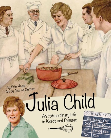 Though there have been several good picture books about Julia published in recent years, solidly researched middle grade biographies about her are few and far between. Not only is Julia Child: An Extraordinary Life in Words and Pictures (DuoPress, 2015) a lively, engaging read, it contains six beautiful full-page watercolor illustration sequences by Joanna Gorham interspersed between chapters.