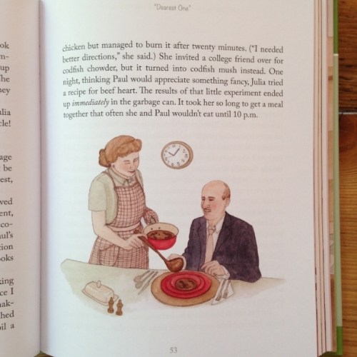 I love this! Such a clever book and such a good way to get kids interested in Julia and her life. It is brilliant! Think I might have to get this for me. So, she hated cilantro. Well, that’s sad. I love cilantro. And no actual chicken dropped. You know, I always thought that sounded like an urban legend. LOL