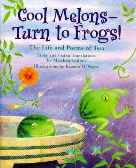 A couple of weeks ago, I searched Lee and Low’s website for books I hadn’t yet read and found the perfect picture book to share for Asian-Pacific American Heritage Month. Cool Melons — Turn to Frogs!: The Life and Poems of Issa by Matthew Gollub and Kazuko G. Stone was first published in 1998, so many of you are probably already familiar with it. How did I miss it? I’m so glad I finally read it, as now it’s one of my favorite haiku picture books ever.