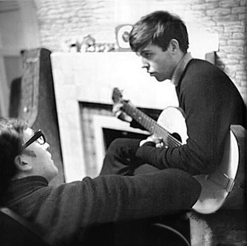 John and Paul “bashing away” on their guitars at Paul’s house after school (click to enlarge).