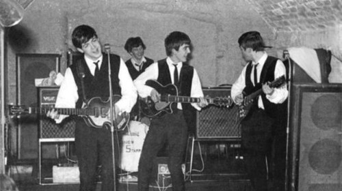 The early Beatles (with Pete Best and Stu Sutcliffe) at the Indra Club in Hamburg (1960).