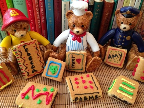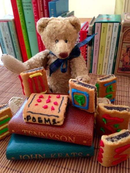 Please help yourself to a yummy fig bar book compliments of the Teddy Town Bears. They made them especially for you to celebrate the recent release of Jumping Off Library Shelves (Wordsong, 2015), a very cool collection of 15 poems selected by master anthologist, author, poet, editor, educator and eternal hotTEA Lee Bennett Hopkins.