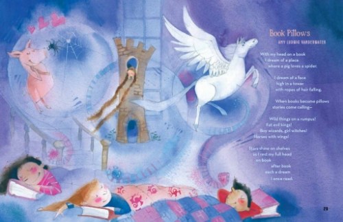 I love how all the poems in this collection are full of heart, resonating with personal, child-centric emotion. Bookended by two wonderful poems by Rebecca Kai Dotlich (adorable morning and midnight mice), we are also treated to lyrical gems by Nikki Grimes, Michele Krueger, Cynthia S. Cotten, Jane Yolen, J. Patrick Lewis, X.J. Kennedy, Lee Bennett Hopkins, Deborah Ruddell, Alice Schertle, Kristine O’Connell George, Ann Whitford Paul, and Amy Ludwig VanDerwater.