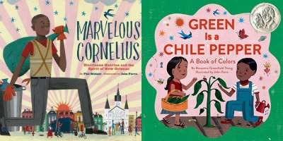 ☕ HOT OFF THE PRESSES: Marvelous Cornelius: Hurricane Katrina and the Spirit of New Orleans, written by Phil Bildner (Chronicle Books, 2015); Green is a Chile Pepper: A Book of Colors, written by Roseanne Greenfield Thong (Chronicle Books, 2014).