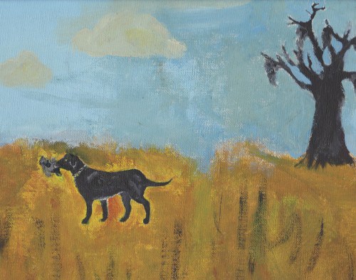 Robyn — The dog in your early painting is the image of our Schnauzer, Sam.