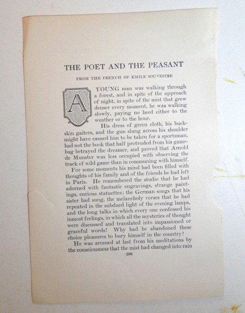 Sometimes I make a found poem by covering words with acrylic washes to reveal a short phrase, and sometimes I use a literary excerpt intact. I do clip the actual text. Yes, I’ve gone to the dark side. But I want the authentic little snippet of history that someone read a century or so ago; I want to share this actual item with my viewers or customers.