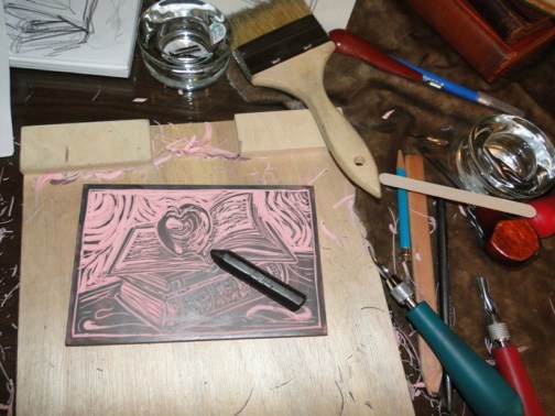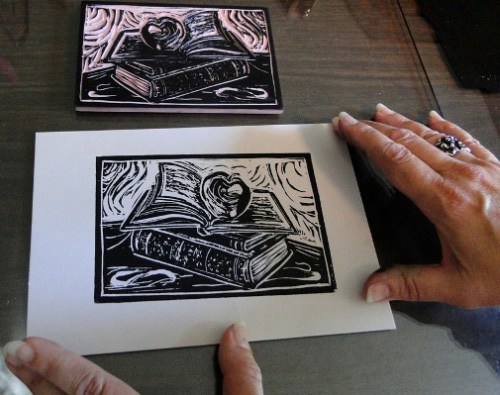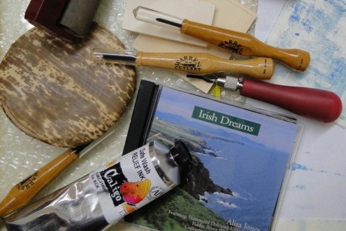 My Pandora stations include folk rock, Bach, U2, Sting, and George Winston. I usually have something playing, unless I’m writing or super-concentrating. When I’m carving and making prints, I MUST listen to Celtic music! It’s both lively and haunting, and I like the effect it has on the lines in my prints.