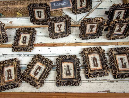 Being an alphabet freak, I especially like all the framed letters you offer in your shop – some are printed, some are metal letters mounted on old dictionary pages, while others are handpainted illuminations. What’s your favorite letter, and why do you like it?