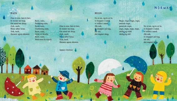 What makes this collection especially interesting is that the poems are presented in their native languages alongside an English translation. So we travel to fascinating places from New Zealand to Norway, Jamaica to Japan, and Indonesia to Iran, reading some of the very first rhymes children in those countries learn.