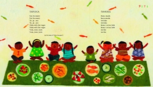 I was happy to find a food poem from Fiji about tapioca that’s meant to be sung to the tune of “Frère Jacques”:
