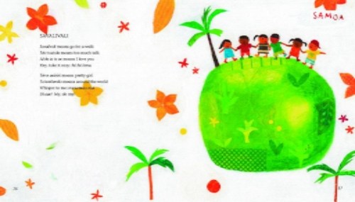 The artwork is lively, and the poems ARE charming, but I agree that to be useful – which is what we want other than to just be entertained – geographical information would have been nice, as some countries have multiple indigenous peoples and languages.