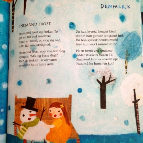 Finally, I loved “Snowman Frost” from Denmark. It’s from a poem by Halfdan Rasmussen — a sweet, poignant narrative perfect for this time of year, when the Spring thaw is not far off.