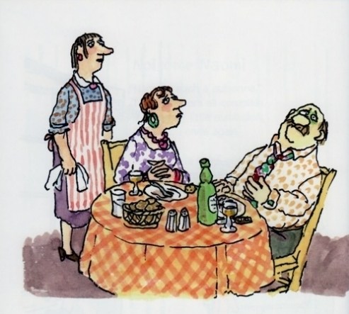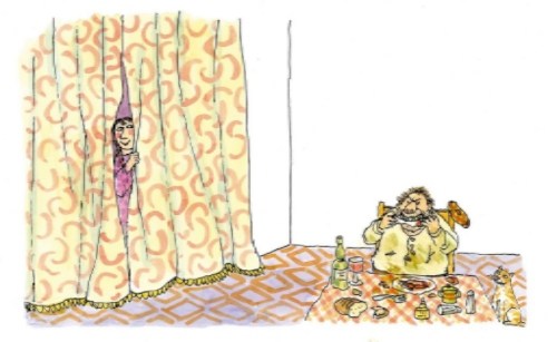 Mr. Steig’s illustrations extend the offbeat humor and silliness of the poems, completing the mini narratives with deftly drawn visual contexts, proving that when it comes to tickling our aberrant funny bones, he and Ms. Steig were definitely on the same page. Oh, those longish noses, sly eyes, pointy shoes, comical cats and craggy teeth! His loose and expressive pen and ink drawings brilliantly capture both melodrama and absurdity with such fiendish aplomb.