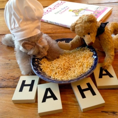 22. What a fun book! I had not heard of the authors before but your post made me want to go find it and his other books you mentioned. Loving the chowder–there is something about alphabet letters that make soup fun! 😉