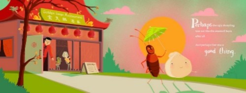 Without the slightest bit of hesitation, the ugly dumpling extended an arm (or a leg) to lead the cockroach out into the beautiful world. Maybe the ugly dumpling wasn’t like those other steamed buns after all, and that was a “good thing.” After all, what truly matters is what’s on the inside, being who you truly are and reciprocating an act of kindness.